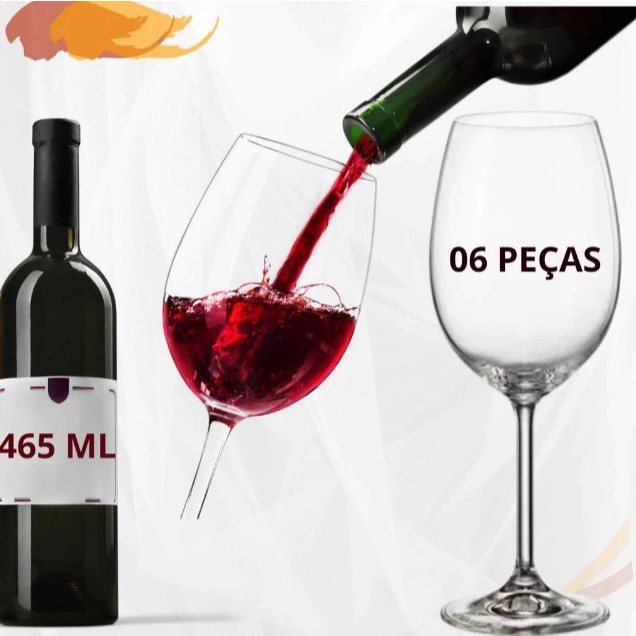 Jogo de Taças com 6 Peças Cristal 610ml Vidro Bohemia Luxo Elegância e Sofisticação Brindes