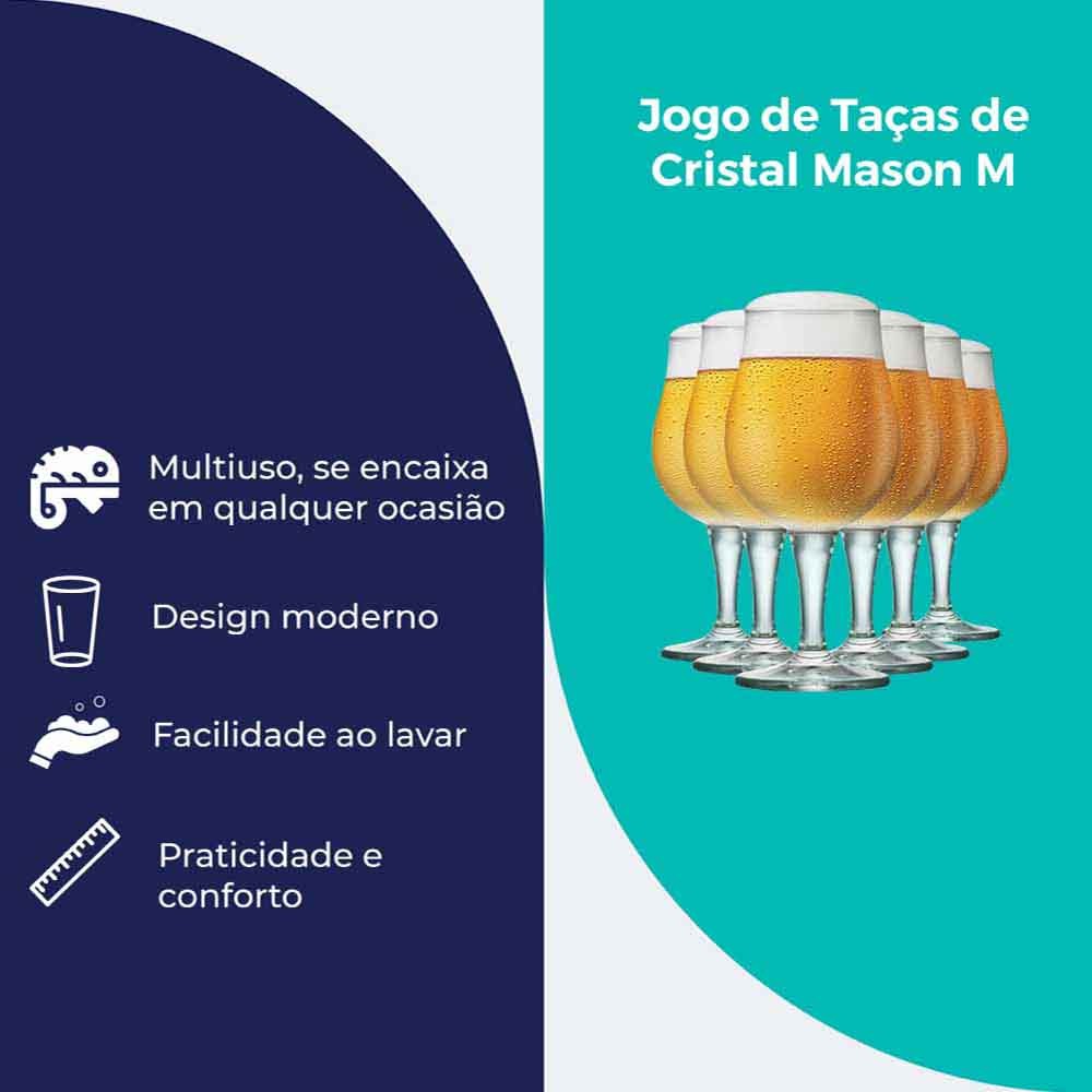 Jogo de Taças de Cristal Mason M para Cerveja 6pcs, 390ml - Ruvolo