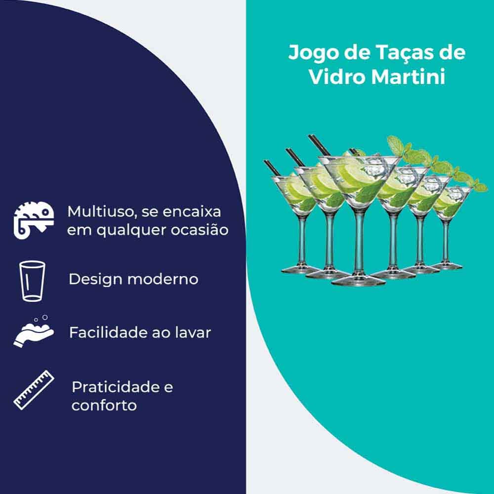 Jogo de Taças de Vidro Martini para Drink 6pcs, 225ml - Ruvolo