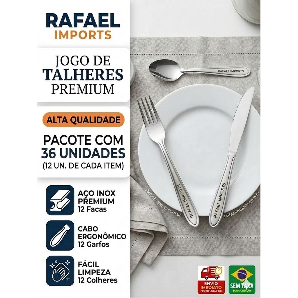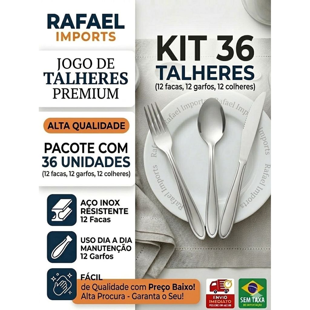 Seja bem-vindo à Rafael Imports! Eleve o nível da sua cozinha com nosso Jogo de Talheres em Aço Inox. Desenvolvidos para quem busca o equilíbrio perfeito entre durabilidade, elegância e custo-benefício, nossos talheres são ideais para o uso diário ou para receber convidados com estilo. Por que escolher os talheres Rafael Imports? * Material de Qualidade: Produzidos integralmente em aço inox resistente. * Design Ergonômico: Cabo confortável e acabamento polido. * Praticidade: Fáceis de limpar e podem ir à máquina de lavar louças. 📦 ESCOLHA O SEU KIT (Selecione a Variação): OPÇÃO 1: Jogo Completo Família (36 Peças) * 12 Facas de Mesa (19cm) * 12 Garfos de Mesa (19cm) * 12 Colheres de Mesa (19cm) OPÇÃO 2: Jogo Essencial (18 Peças) * 6 Facas de Mesa (19cm) * 6 Garfos de Mesa (19cm) * 6 Colheres de Mesa (19cm) > ⚠️ ATENÇÃO: Verifique a variação selecionada antes de finalizar a compra para garantir que escolheu a quantidade desejada. > 🚀 INFORMAÇÕES DE ENVIO Trabalhamos com estoque a pronta entrega! Seu pedido será postado em até 24 horas úteis após a confirmação do pagamento. Prezamos pela agilidade e pelo cuidado com a sua embalagem. Especificações Técnicas: * Marca: Rafael Imports * Composição: Aço Inoxidável * Comprimento médio: 19cm Conteúdo da Embalagem: 01 Kit de Talheres (conforme quantidade selecionada). Agradecemos a preferência! Se tiver qualquer dúvida, nossa equipe está à disposição no chat. Rafael Imports — Qualidade que você sente na mesa.