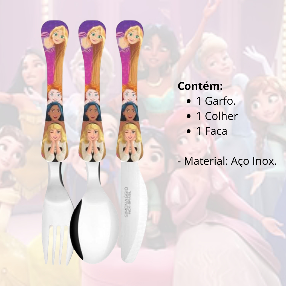 Jogo De Talheres Inox 3 Pcs Infantil Princesas - Disney