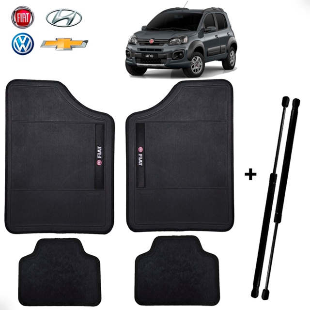 Jogo de Tapete Automotivo Fiat + Par Amortecedor Porta Malas Novo Uno Attractive 2010 em Diante