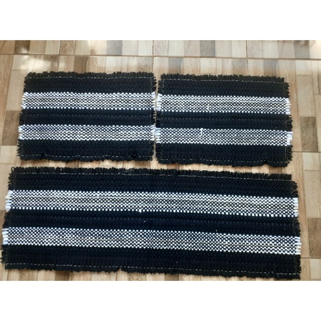 Jogo de Tapetes para Cozinha 3 Peças – Com Passadeira | Malha Trançada Artesanal Tapete Pesado