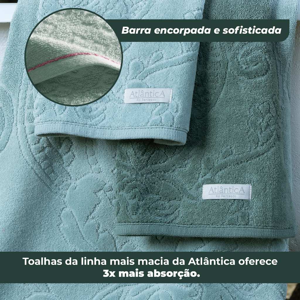 O jogo de toalhas Amalfi, da marca Atlântica, une conforto, qualidade e sofisticação em um conjunto elegante e funcional. Produzido em 100% algodão fio penteado, proporciona maciez excepcional, excelente absorção e secagem eficiente, elevando a experiência do pós-banho. O kit contém 2 toalha banhão de 75 cm x 1,45 m e 2 toalha de rosto de 48 cm x 80 cm, ambas com 470g/m². A toalha banhão envolve o corpo com aconchego, enquanto a de rosto garante praticidade e suavidade no uso diário. O corpo em jacquard acrescenta modernidade e elegância ao design, transformando seu banheiro em um espaço ainda mais sofisticado. Duráveis e resistentes, as toalhas Amalfi preservam sua beleza e maciez mesmo após diversas lavagens, sendo perfeitas tanto para uso próprio quanto para presentear com requinte e bom gosto. FAQ – Perguntas Frequentes 1. O que vem no jogo Amalfi? O kit contém 4 peças: 2 toalha banhão (75 cm x 1,45 m) e 2 toalha de rosto (48 cm x 80 cm). 2. Qual a composição das toalhas? São confeccionadas em 100% algodão fio penteado, garantindo maior maciez, absorção e resistência. 3. Qual a gramatura das toalhas? Ambas possuem 470g/m², oferecendo corpo encorpado, excelente absorção e secagem eficiente. 4. Qual o diferencial do jacquard? O corpo em jacquard proporciona design moderno, sofisticado e com relevos que valorizam o ambiente. 5. Posso lavar as toalhas na máquina? Sim. Recomenda-se lavar com sabão neutro e evitar alvejantes, para manter a maciez e a durabilidade do tecido.