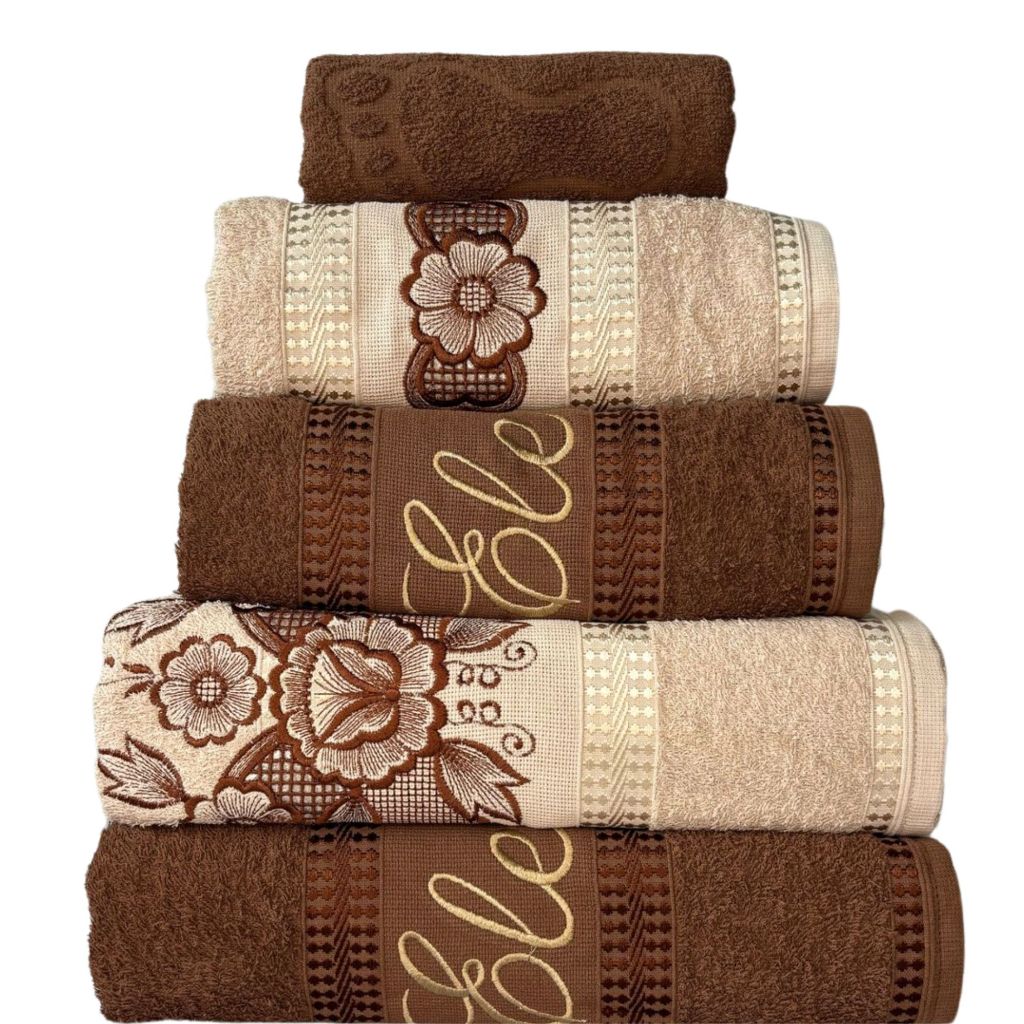 Jogo de Toalha de Banho Bordado Richilieu 5 Peças Toalhas Muito Delicadas