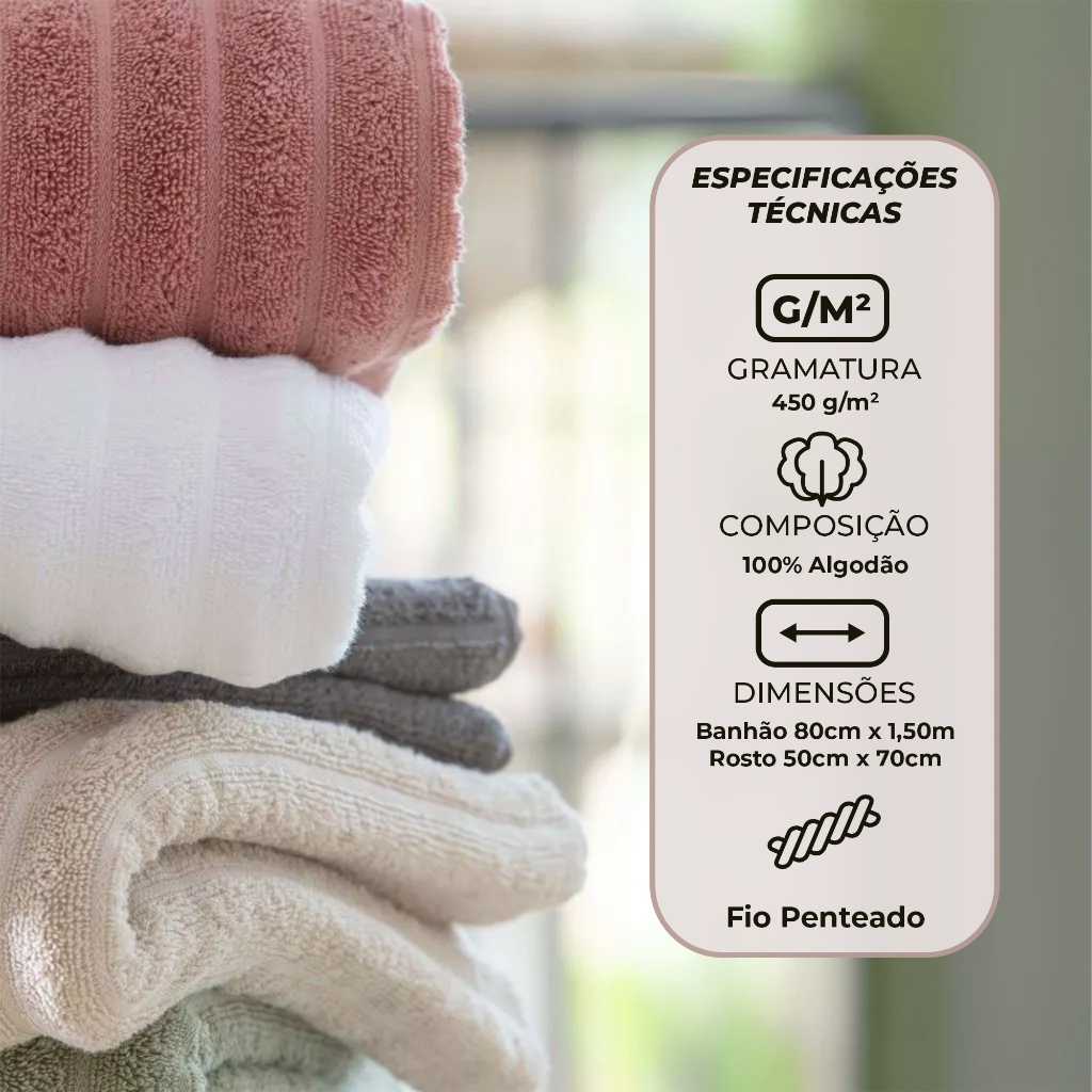 Jogo De Toalhas Banhão Gigante Fio Penteado Grossa 4 peças 450g/m2 100% Algodão Wave