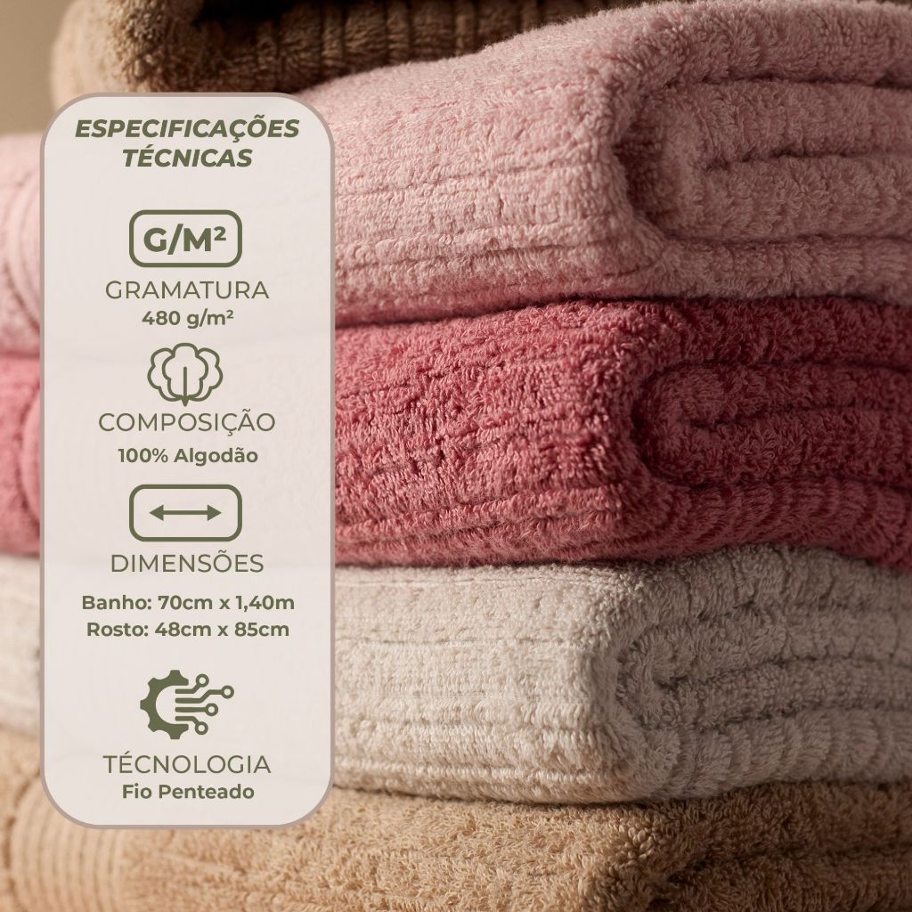 Jogo de Toalhas Banho Buddemeyer Fio Penteado 4 peças 100% Algodão Kit Banho e Rosto Canelada