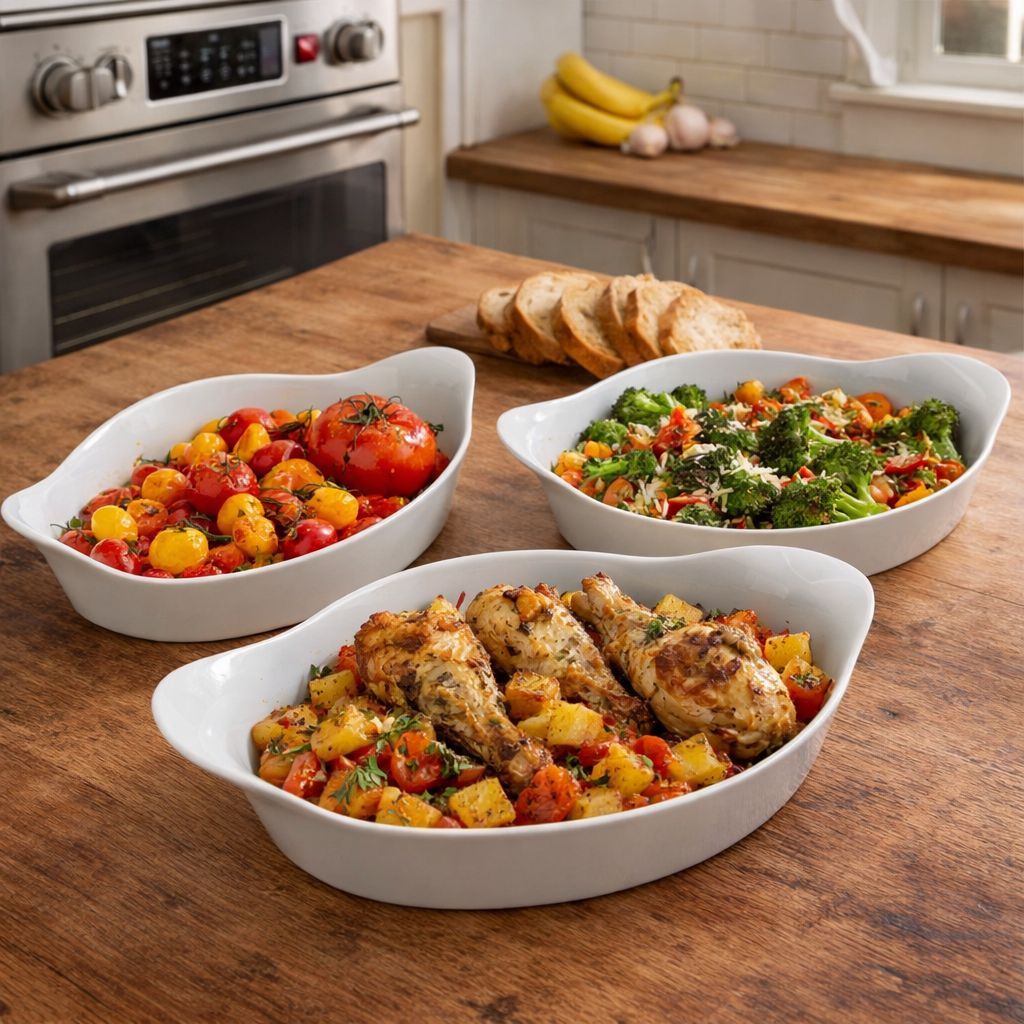 Jogo De Travessas Marinex 3 Peças Opaline Vidro Vai Ao Forno