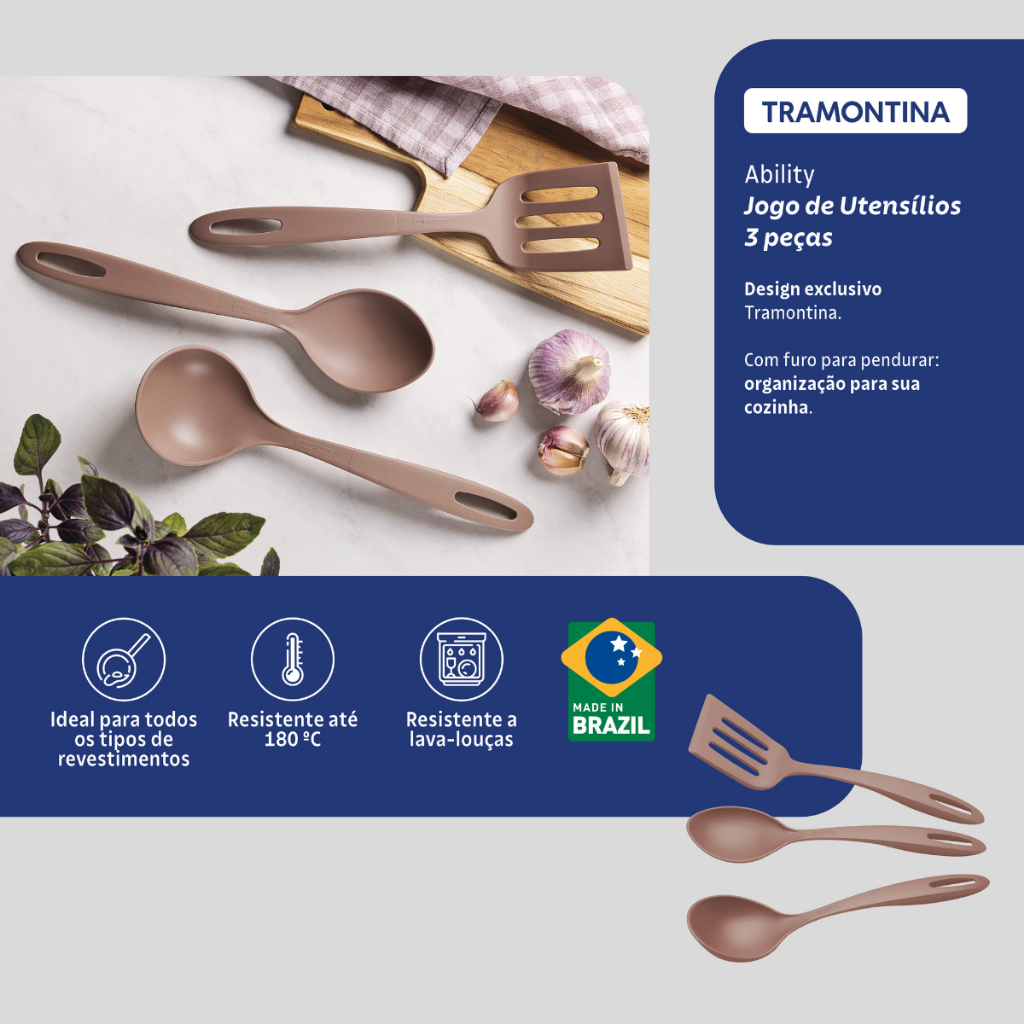 Jogo de Utensílios Tramontina Ability Mocaccino 03 Peças Colher Concha Espátula
