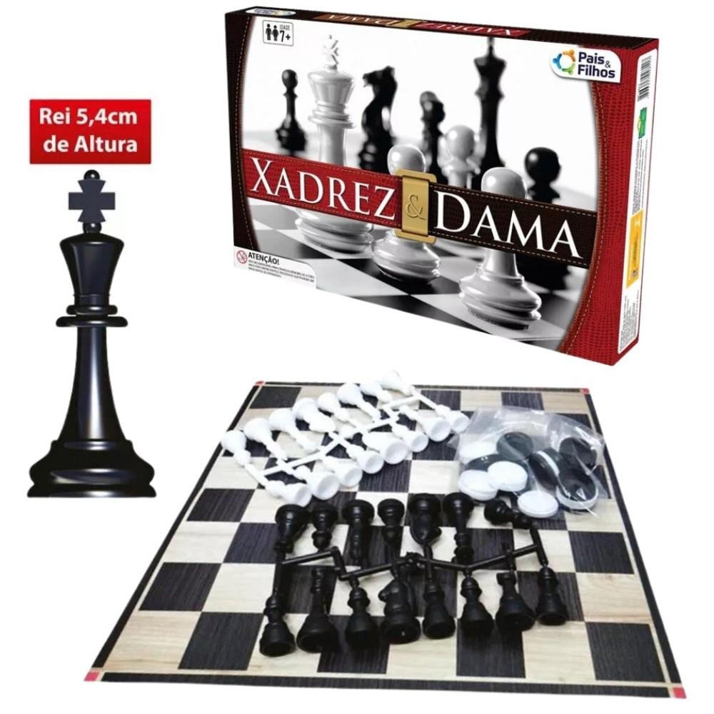 JOGO DE XADREZ E DAMA PAIS E FILHOS CLÁSSICO INFANTIL LÓGICA ESTRATÉGIA DEFENDER TABULEIRO CHESS