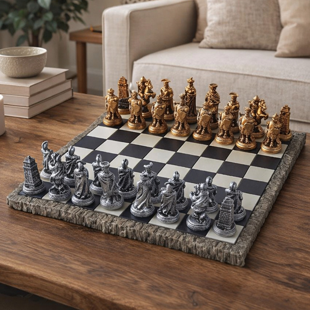 Jogo De Xadrez medieval Tabuleiro Em Resina Colecao Tematica