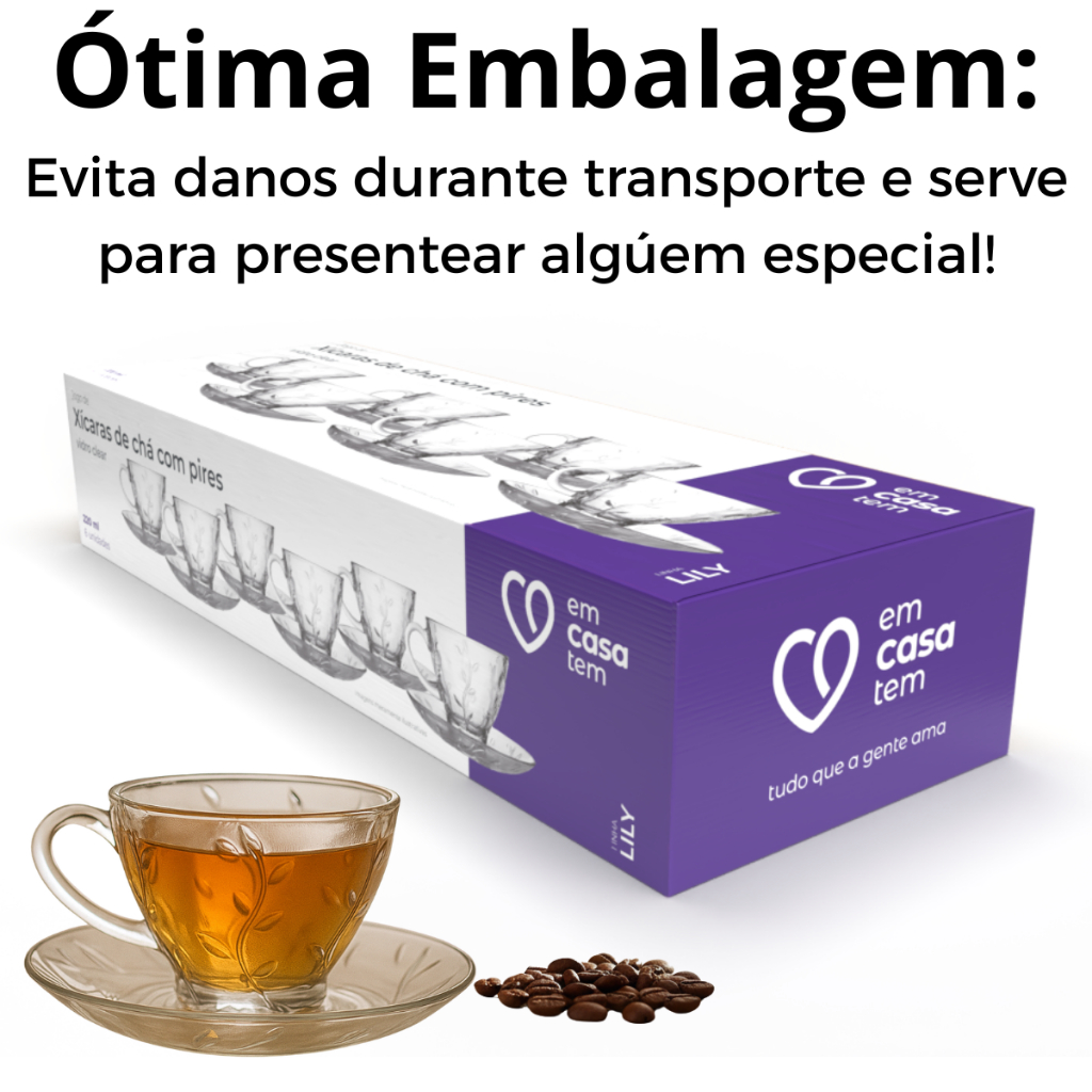 Jogo de Xícara com Pires 12 Peças Cafe e Cha Lily Transparente Vidro 220ml Decorada Luxo • Conjunto com 12 peças (6 xícaras + 6 pires), ideal para servir com elegância. • Capacidade de 220ml, perfeito para café, chá ou cappuccino. • Vidro transparente decorado, design sofisticado e moderno. • Acabamento luxo que valoriza sua mesa e impressiona visitas. • Material resistente e durável para o uso diário. • Fácil de limpar e não absorve odores. • Ótima opção para presentear com estilo e bom gosto. PRODUTO A PRONTA ENTREGA ---------- DISPONÍVEL PARA TODO BRASIL PRODUTO NOVO, LACRADO E COM NOTA FISCAL ENVIO IMEDIATO Qualquer dúvida, estamos à disposição :)