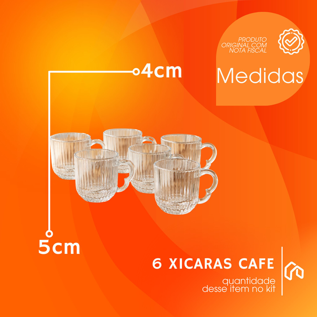 Jogo De Xicara De Luxo Vidro Com Borda Premium 180ml