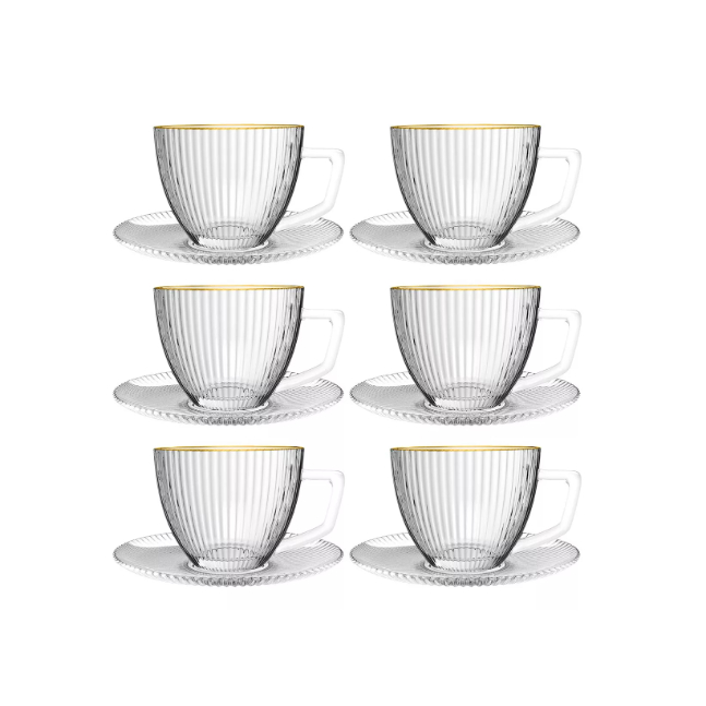 Jogo de Xícaras 12 Pçs Para Chá Com Pires Graffiato C/ Borda Dourada 230ML - Hauskraft