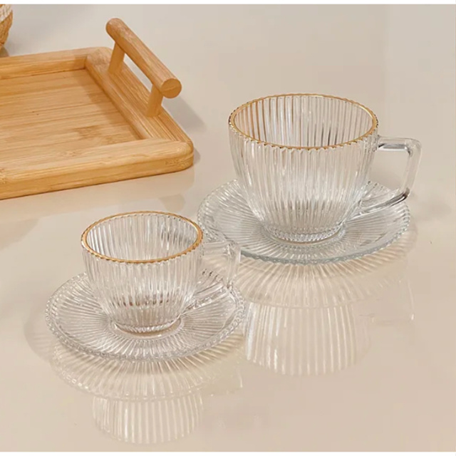 XÍCARA PARA CHÁ COM PIRES DE VIDRO GRAFFIATO BORDA DOURADA 230ML 6 PEÇAS - Contém: 12 Peças • 6 Xícaras: 9,5 x 7,5 x 4,5cm (CxLxA) • 6 Pires: 14 x 14 x 2cm (CxLxA) - Capacidade: 230ml - Dimensões da Embalagem: - Tipo de Embalagem: CAIXA LITOGRAFADA - Material: Vidro - Cor: Transparente com Borda Dourada - Marca: HAUSKRAFT - Origem: CHINA