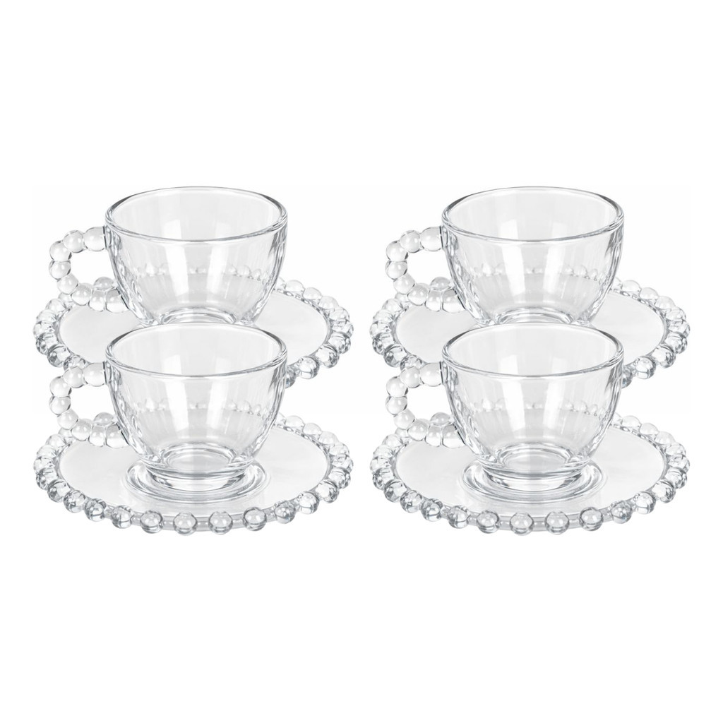 Jogo de Xícaras de Café Pérola 4 Peças com Pires 100ml – Vidro Elegante para Mesa Posta e Uso Diário