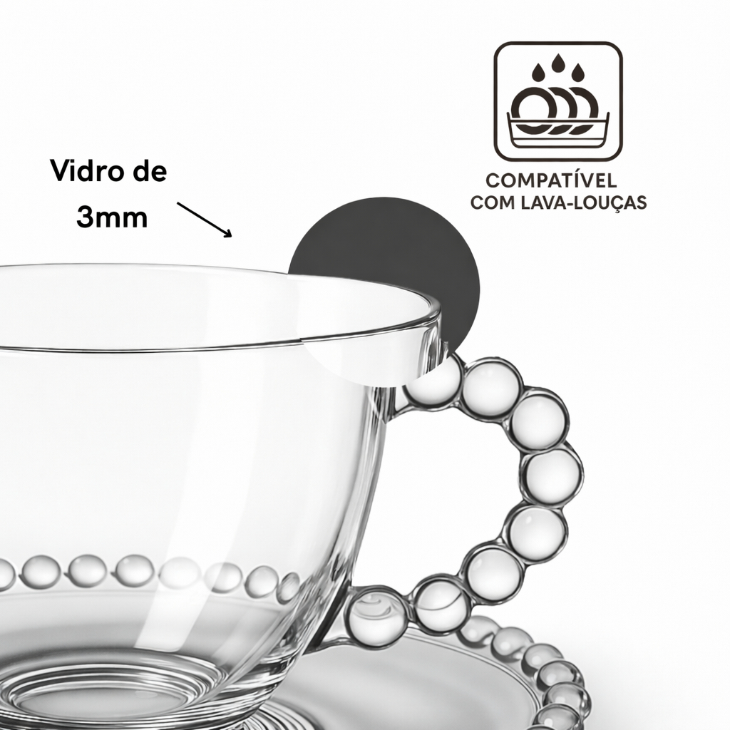 Jogo de Xicaras de Chá com Pires 100ml Vidro Reforçado