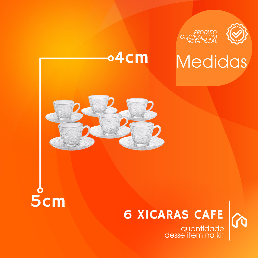 | Jogo De Xícaras E Pires Em Vidro Transparente 12 Peças Para Café 80... este produto | R$ 29,99 | 50% | 5.0/5 | — |