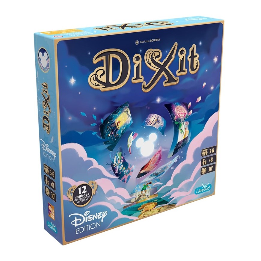 Dixit, o amado clássico moderno que cativou milhões de jogadores ao redor do mundo, está encontrando o universo Disney! Um novo jogo independente de Dixit, com 84 cartas maravilhosas, baseadas nos famosos filmes da Disney e Pixar, desde Branca de Neve até Red: Crescer é uma Fera. Mesmas regras, com novo material de Dixit para 3 a 6 jogadores: um tabuleiro, marcadores de voto, peças de madeira... tudo lindamente revestido com a magia Disney. - Dixit: Disney Edition é uma jornada que estimula a imaginação e intuição, usando as obras-primas da Disney e da Pixar em suas cartas; - Novo clássico: boardgame premiado mundialmente, combina adivinhação e narrativas com ilustrações de arte, agora dedicado ao universo mágico da Disney; - Componentes temáticos: os componentes do jogo foram recriados para capturar a magia das maiores produções da Disney; - Compatibilidade: totalmente integrado à linha Dixit, você pode combiná-lo com jogos e expansões anteriores e futuras do universo Dixit Componentes: - 1 livro de regras 84 cartas Dixit 6 marcadores de votação 6 peões de personagens em madeira (Mickey Mouse, Gato de Cheshire, Mike Wazowski, Meilin Lee, Gênio e Tinker Bell) 1 Tabuleiro de jogo, composto por: 1 trilha de pontos, 6 espaços para cartas, 1 referência para os jogadores Especificações Fabricante: Galápagos Ref.: DIX401 Cód. Barras: 3558380106944 Não recomendado para crianças menores de 03 anos. Dimensões da embalagem (AXLXC): 27 x 27 x 6 cm Peso: 780g Garantia do vendedor: 7 dias Garantia do fabricante: 3 meses Produto original, novo, lacrado e acompanhado de Nota Fiscal.