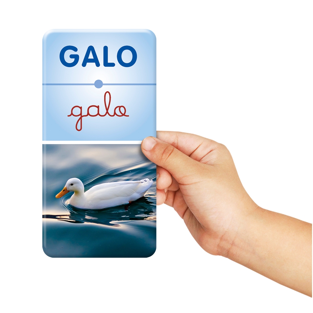 Dominó Já Sei Ler induz a criança, de forma dinâmica e divertida, a pensar antes de agir. Ao ver determinada figura, é necessário que ela procure a cartela correspondente, por meio da leitura, da memorização e da associação. Elas aparecem escritas em letras de fôrma (bastão) e em letra de mão (cursiva).Estimule a criança a ler as palavras em voz alta. Dessa maneira, a criança aprimora a dicção e aprende brincando!