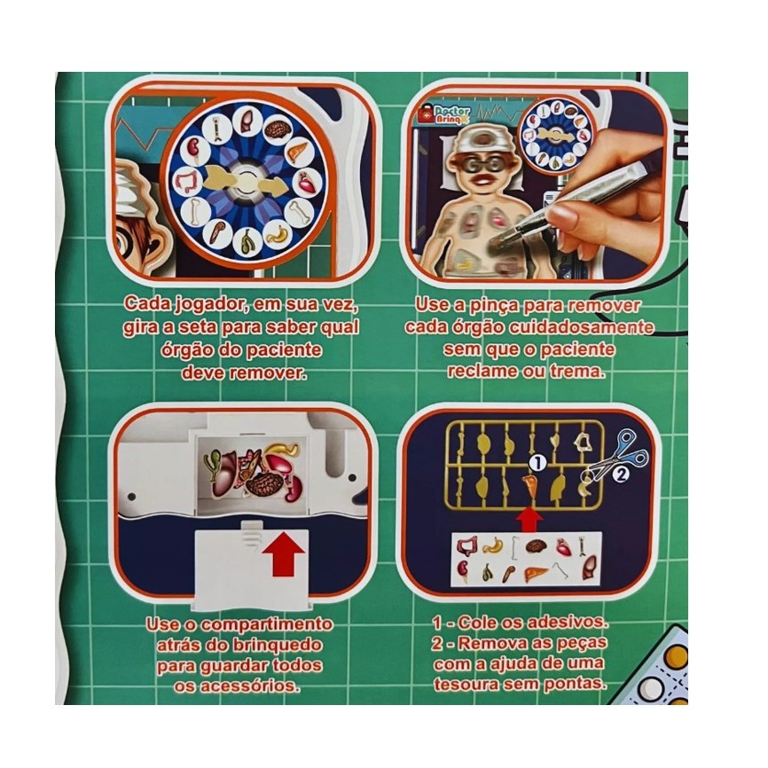 Jogo Doctor Brinq Brincando De Operar - Shiny Toys Desafie seus amigos!! Quem tem as mãos mais firmes para operar o paciente? Apresentamos o Doctor Brinq, um emocionante jogo de habilidade médica que desafiará você a ser o médico mais habilidoso e preciso. Inspirado no clássico Operando da Hasbro, este jogo da marca Polibrinq traz uma nova dimensão de diversão médica. Salve Vidas com Destreza:Coloque suas habilidades à prova enquanto remove órgãos e objetos estranhos do paciente com um toque de destreza e precisão. O jogo apresenta um paciente com "órgãos" e "objetos" que precisam ser retirados sem tocar nas bordas metálicas e disparar o alarme! Especificações: Marca: Shiny Toys Referência: 1254 Cód. Barras: 7908650702868 Idade recomendada 5+ anos. Funciona a bateria ou pilha? 3 Pilhas AA Alimentação:(Não inclusas) Dimensões do Produto na Embalagem: 30 x 26 x 6cm Peso: 390 g Certificado Inmetro: 001571/2022 Garantia do Fabricante: 3 meses Garantia do Vendedor: 7 dias Produto Novo, Original, Lacrado e Acompanhado de Nota Fiscal.