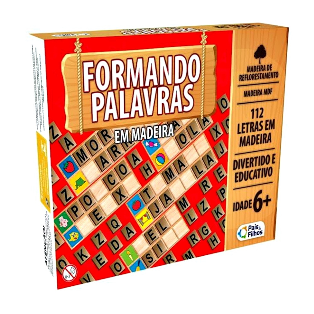Jogo Formando Palavras 112 Letras O jogo Formando Palavras da Pais e Filhos foi criado especialmente para estimular o aprendizado e desenvolver o raciocínio da garotada. É um jogo interessante, acompanhado de várias letras de madeira soltas e plaquinhas para a criança formar palavras. Nas plaquinhas tem desenhos onde a criança vai montar as palavras de acordo com o desenho ou pode montar qualquer outras palavras. Conta com 112 letrinhas em madeira de reflorestamento (mdf), além de 24 cartelas ilustradas em papel cartão, facilitando a identificação de qual palavra formar, fazendo com que a criança aprenda a reconhecer e escrever as palavras de uma forma muito divertida. DESCRIÇÃO: -Faixa etária: a partir de 6 anos -Contém: 24 fichas ilustradas em papel cartão (8 fichas com palavras de 4 letras; 2 fichas com palavras de 5 letras; 10 fichas com palavras de 6 letras; 4 fichas com palavras de 7 letras) e 112 letrinhas em madeira (mdf) no formato de letra maiúscula. -Objetivo do jogo: Desenvolver a linguagem verbal e oral da criança, auxiliando no processo de alfabetização. - Participantes - de 2 a 4 Jogadores - Medidas aproximadas das letrinhas: 2,8 x 2,5 x 0,3cm -Peso Unit.(Kg): 0,320gramas - Medida Unit.(cm): 24,2 x 18,5 x 5,5 ---------------------------------------------------------------------------------Apresentação------------------------------------------------------------------------------------- Olá, amigos(as). Tudo bem? Seja bem vindo(a) à nossa Loja MEN VARIEDADES. A Men Variedades trabalha com produtos de procedência no mercado garantindo uma experiência fantástica de compra. Produtos à pronta entrega em estoque físico, postagem dos produtos em 24 horas úteis para todo Brasil.