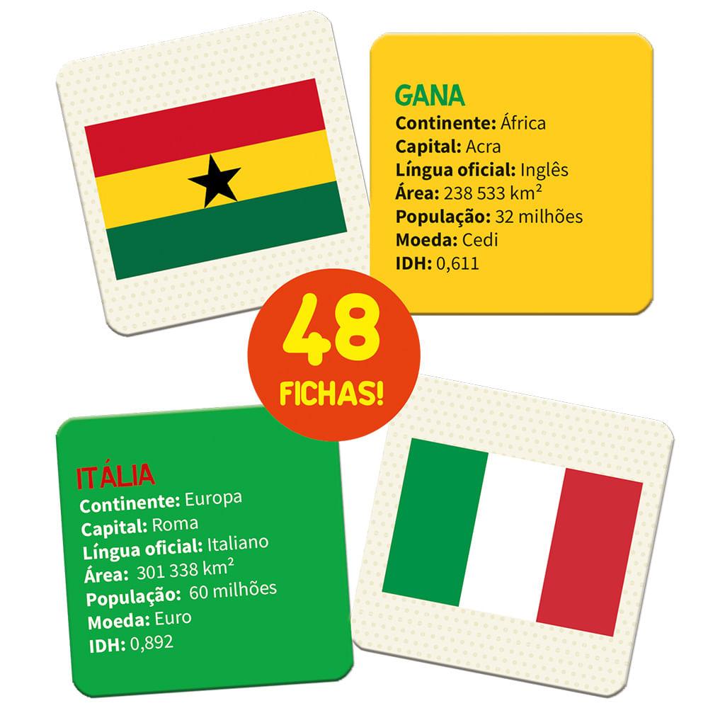 Jogo Educativo Países e suas Bandeiras - Toyster Divirta-se aprendendo sobre os países e suas bandeiras! Com este jogo as crianças brincam enquanto aprendem várias informações sobre 48 países, como suas bandeiras, capitais, idiomas e muito mais! São três maneiras diferentes de jogar! Selo Inmetro: 000518/2022