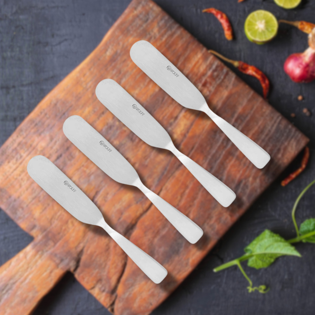 Jogo Espátula Para Manteiga Kit Com 4 Peças Patê e Geleia Em Aço Inox Premium Wolff