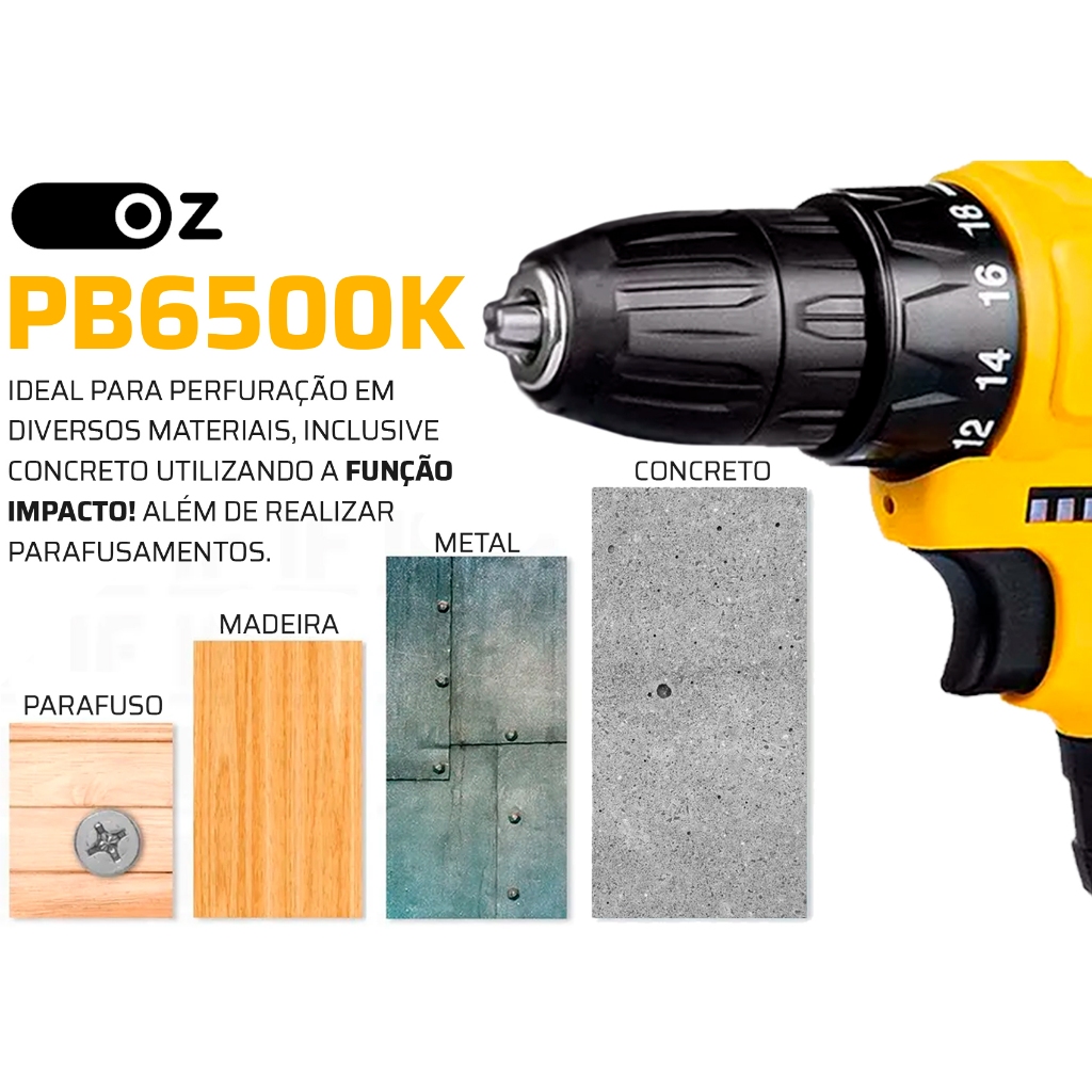 Jogo Ferramentas + Parafusadeira Furadeira Impcato 3/8 21v