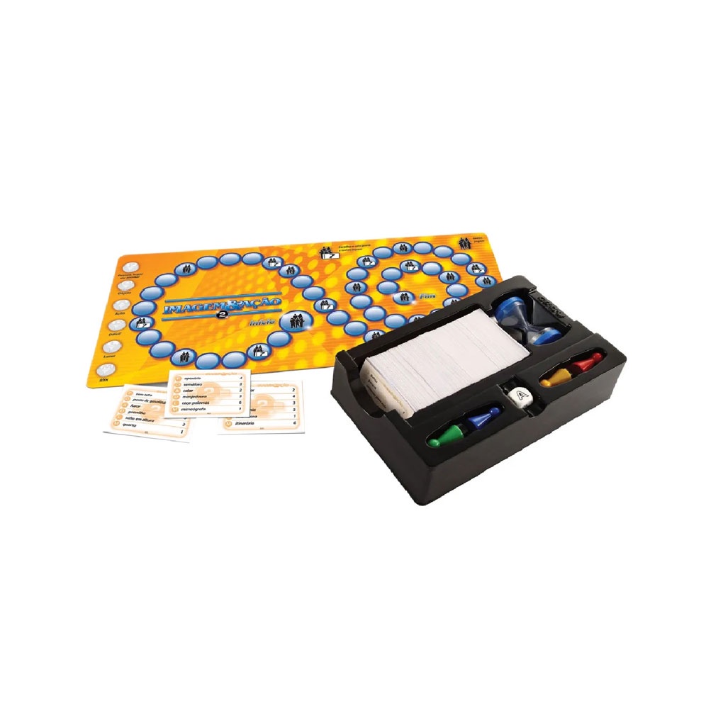 DESCRIÇÃO DO PRODUTO O clássico jogo de desenho e adivinhação, agora com novas palavras, totalmente diferentes daquelas do Imagem & Ação 1! Cada jogador será o desenhista e, na sua vez, tentará passar à sua equipe uma palavra ou expressão. É proibido falar, escrever letras e números e fazer gestos ou mímicas. E você não precisa ser desenhista, o que vale é a sua criatividade! Os únicos instrumentos que você terá à disposição são um lápis e um papel, para desenhar, esboçar e rabiscar o que quiser. Os colegas de equipe têm o tempo da ampulheta para adivinhar! São 2.400 palavras ou expressões novas, divididas em 6 categorias para você e seus amigos passarem ótimos momentos juntos. Descubra como é divertido reunir o pessoal para uma partida de Imagem & Ação! CARACTERÍSTICAS TÉCNICAS Conteúdo da Embalagem: 1 tabuleiro, 1 ampulheta, 360 cartas, 4 peões, 2 dados e 1 manual de instruções Você também vai precisar de lápis e papel, não inclusos no produto. Dimensões da Aproximadas da Embalagem: 23,0 x 35,5 x 6,5 cm Material/Composição: Plástico, Papel e Papel Cartonado Idade Mínima Recomendada: A partir de 10 anos Participantes: 4 ou mais Marca: Grow Referência: 01709