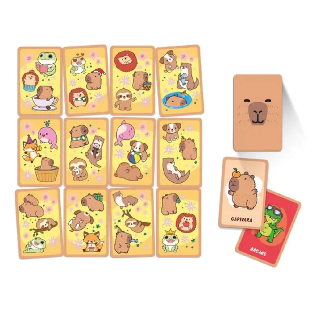 Nesse jogo, o desafio é manter os olhos atentos e não se distrair com tanta fofura espalhada pelas cartas. A cada Carta Personagem revelada, é preciso exercitar a rapidez para localizar a Capivara, e tantos outros animais incríveis da nossa fauna, no grande universo de imagens das Cartas-Tabuleiro. Por que escolher Eu Vi! Capivara? - Diversão para toda a família: Uma experiência incrível para crianças e adultos se divertirem juntos. - Desafie sua atenção e rapidez: Seja o primeiro a gritar “Eu Vi!” e acumule pontos conforme encontra as personagens. - Portátil e prático: Fácil de levar para qualquer lugar e garantir a diversão em viagens, festas ou encontros entre amigos. - +4 Anos Características: - Marca: Copag - Modelo: 36364 Imagens Meramente Ilustrativas Conteúdo da Embalagem: - 55x Cartas