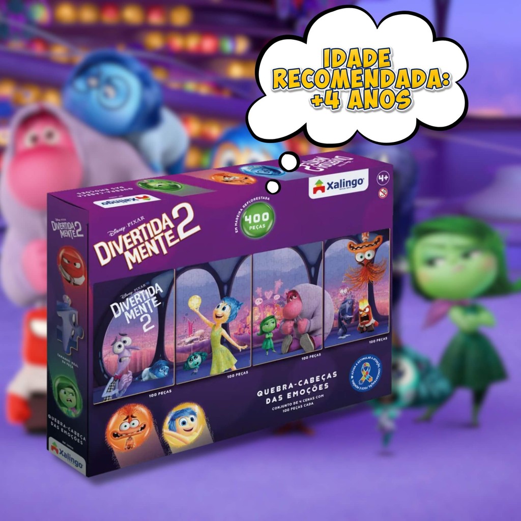 Explore o mundo das emoções de uma forma única com o Quebra-Cabeça das Emoções Divertidamente 2! Este incrível quebra-cabeça de 400 peças oferece 4 cenas distintas que se encaixam perfeitamente para formar uma grande imagem única, criando uma experiência de montagem ainda mais divertida e desafiadora. Cada peça é uma chance de explorar as diversas emoções e os momentos marcantes do filme, estimulando o raciocínio lógico, a concentração e a percepção espacial. Ideal para crianças e adultos, esse quebra-cabeça é perfeito para fortalecer habilidades cognitivas enquanto se diverte com as cenas emocionantes do universo de Divertidamente 2. - Dimensões Aproximadas (AxLxC): 2,5X41X28 cm - Número de Peças: 400 peças - Idade Recomendada: + 4 Anos Características: - Marca:XALINGO - Modelo:11243 *Imagens Meramente Ilustrativas* Conteúdo da Embalagem: - 1x Quebra-Cabeça das Emoções Divertidamente 2 - 4 Cenas 400 Peças Xalingo quebra cabeça - quebra cabeças - divertidamente - xalingo - divertidamente 2