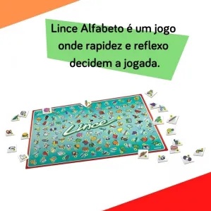 Seja o mais rápido, encontrando a imagem ou a letra antes de todos! Lince é uma movimentada competição na qual sua rapidez e seu reflexo decidem cada jogada. Os jogadores recebem as cartelas com figuras e letras que estão espalhadas no tabuleiro e depois do sinal, devem tentar localizá-las rapidamente, com suas fichas coloridas. Quem colocar primeiro as fichas será o vencedor. Por isso, não perca tempo! Você pode vencer ou perder em questão de segundos! Nesta famosa versão o jogador poderá utilizar das iniciais de cada figura para localizar no tabuleiro. As cartelas trazem a letra inicial da figura ilustrada. A partir de 5 anos para 2 a jogadores Tempo estimado de uma partida 20 minutos. Código do Produto: 03448 Especificações Técnicas Faixa Etária : A partir de 5 anos Componentes : Contém: 1 tabuleiro, 1 saco plástico, 18 ficas coloridas, 121 cartelas ilustradas e 1 manual de instruções. Dimensões da embalagem : 31,0 X 23,5 x 4,5 cm Precisa de baterias ou Pilhas : NA Participantes : 2 a 6 Garantia contra defeitos de fabricação (meses) : 3 Código de Barras : 7908010134483 Certificação Inmetro : CE-BRI/ICEPEX-N 01024-25 - NM300-2004 - OCP Outras Informações : Não recomendável para menores de 3 anos por conter partes pequenas.