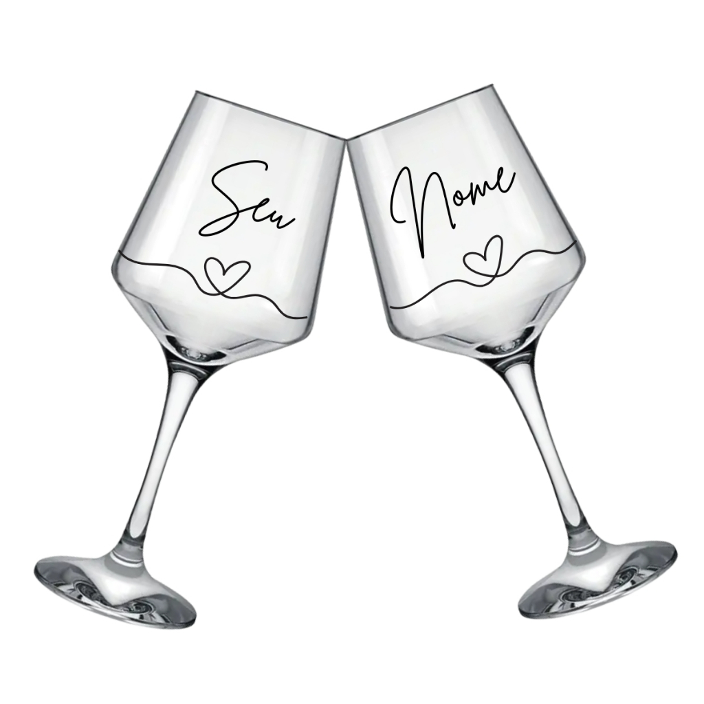 Jogo Kit 02 Taças Casal Vinho Vidro Brunello 490ML Namorados Personalizado Presente Chique Elegante