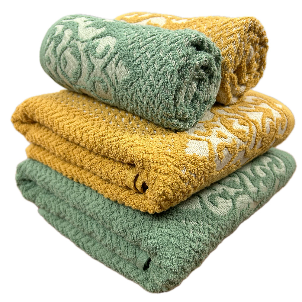 Jogo/Kit 2 Toalhas Banhão Corttex Gigante Barra Jacquard + 2 Toalhas de Rosto Medalhão Louise Dahlia