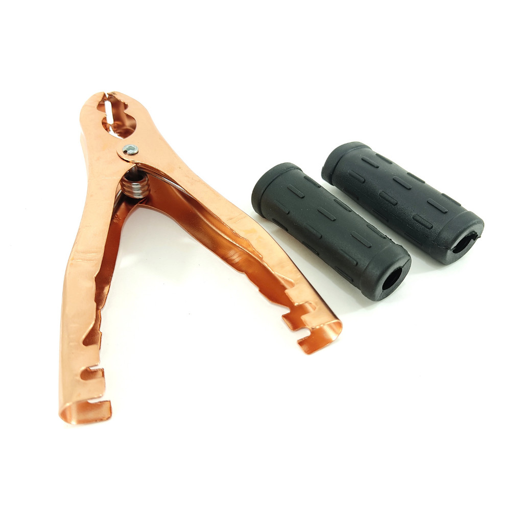 Kit 4 Garras Jacaré P/ Cabo De Bateria 200A ---------------------------------- Garra jacarré para montagem de cabos para transferência de carga de baterias - 2 Garras Jacarré Vermelha ( Positivo ) - 2 Garras Jacarré Preto ( Negativo ) - Capacidade 200A - Dimenção aproximada: 9 x 15 x 2cm - Composição: Metal cobreado e borracha - Exelente qualidade, alto desempenho e uso profissional.