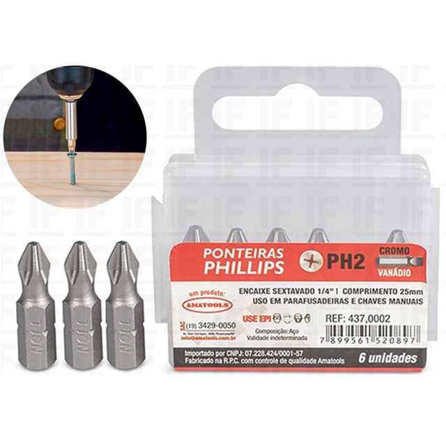 Distribuído por Ismafer Ferramentas PONTEIRA DE PARAFUSADEIRA (BITS) - Descrição: Encaixe Universal - Serve em qualquer Furadeira/Parafusadeira - Especificações: :: Bitola (mm): PH2x25 mm :: Apresentação: embalagem com 6 Pontas - Garantia: 3 meses pelo fabricante SKU: 16398 - Marca: Noll - Modelo: Noll - 437,0002 Distribuído por Ismafer Ferramentas