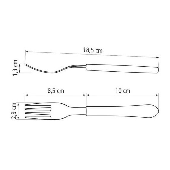 Garfo de Mesa Tramontina Leme com Lâmina em Aço Inox e Cabo de Polipropileno Leve à mesa a alegria das cores. Os talheres da linha Leme tem cabos resistentes de polipropileno. Com lâminas em aço inox, os garfos têm alta resistência e durabilidade. Todas as peças podem ir à máquina de lavar. CONTEÚDO - 12 Garfos de Mesa Tramontina Leme com Lâmina em Aço Inox e Cabo de Polipropileno ESPECIFICAÇÕES - Marca: Tramontina - Linha: Leme - Cor/Acabamento: Preto - Quantidade de peças: 12 - Material do talher: Aço Inox - Material do cabo: Polipropileno - Peso: 21,4g - Dimensões aproximadas do produto: 1,3x2,3,4x18,5cm (AxLxC)