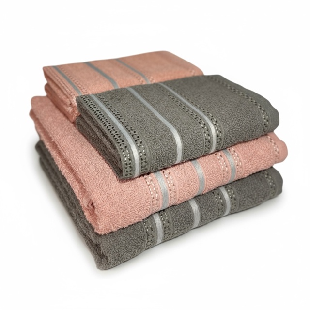 Jogo de Toalhas Diana – 100% Algodão Premium Transforme o seu banho em um momento de conforto e bem-estar com o Jogo de Toalhas Diana produzido com 100% algodão de alta qualidade. Com toque macio e excelente absorção, as toalhas Diana unem elegância, durabilidade e praticidade para o dia a dia. Disponível em diversas cores sofisticadas, este conjunto é ideal para quem busca qualidade e estilo no enxoval. --- Características do Produto Composição: 100% Algodão Tamanho: 70 cm x 130 cm Gramatura: 330 g/m² Toque: Macio e confortável Alta absorção e secagem rápida Durável e fácil de lavar Acabamento com listras decorativas Disponível em várias cores elegantes Por que escolher a Toalha Diana * Produzida com algodão puro, que proporciona toque suave na pele * Ideal para o uso diário, academias, viagens ou presente * Alta resistência mesmo após várias lavagens * Design moderno que combina com qualquer banheiro Garanta agora o seu Jogo de Toalhas Diana e sinta a diferença de um produto macio, bonito e com qualidade premium.