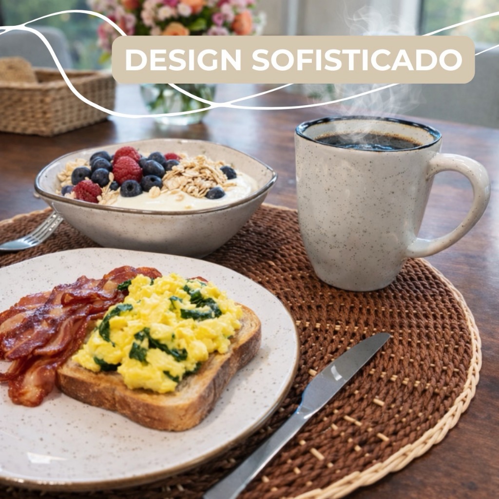 Jogo Lanche Café 18 Peças Ryo Maresia Prato Sobremesa Caneca Tigela Porcelana Oxford