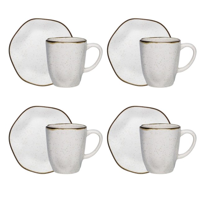 O wabi-sabi é um conceito japonês que valoriza o imperfeito, do processo de criação até o seu acabamento. Exaltar o irregular, o impermanente e o incompleto é uma homenagem da linha Ryo à esta sabedoria japonesa. A coleção Ryo Maresia traz uma composição que valoriza a beleza das praias, o toque da areia e o frescor do mar. As peças Ryo Maresia recebem aplicação de esmalte com pigmentação e de um filete reagente aplicado de forma manual garantindo a unicidade de cada peça. Conteúdo da embalagem: 4 Pratos De Sobremesa Com 21,5 Cm De Diâmetro, 4 Canecas Com 9 Cm De Diâmetro, 11 Cm De Altura E 380 Ml De Capacidade - Garantia: 3 Meses para Defeitos de fabricação - Marca: Oxford - Tipo da embalagem: Papelão pardo - Material: Cerâmica - Cor: Off White / Marrom - Forma: Redondo - Tipo: Lanche - Linha: Ryo - Modelo: Ryo - Utilizações Seguras: Resistente ao micro-ondas, Resistente a lava-louças - Condição do item: Novo - Unidades por kit: 8 - País de origem: Brasil - Duração de garantia: 3 meses ATENÇÃO: Para compras de pessoa jurídica,cadastreosdados exatamente como consta em seu cartão do CNPJ