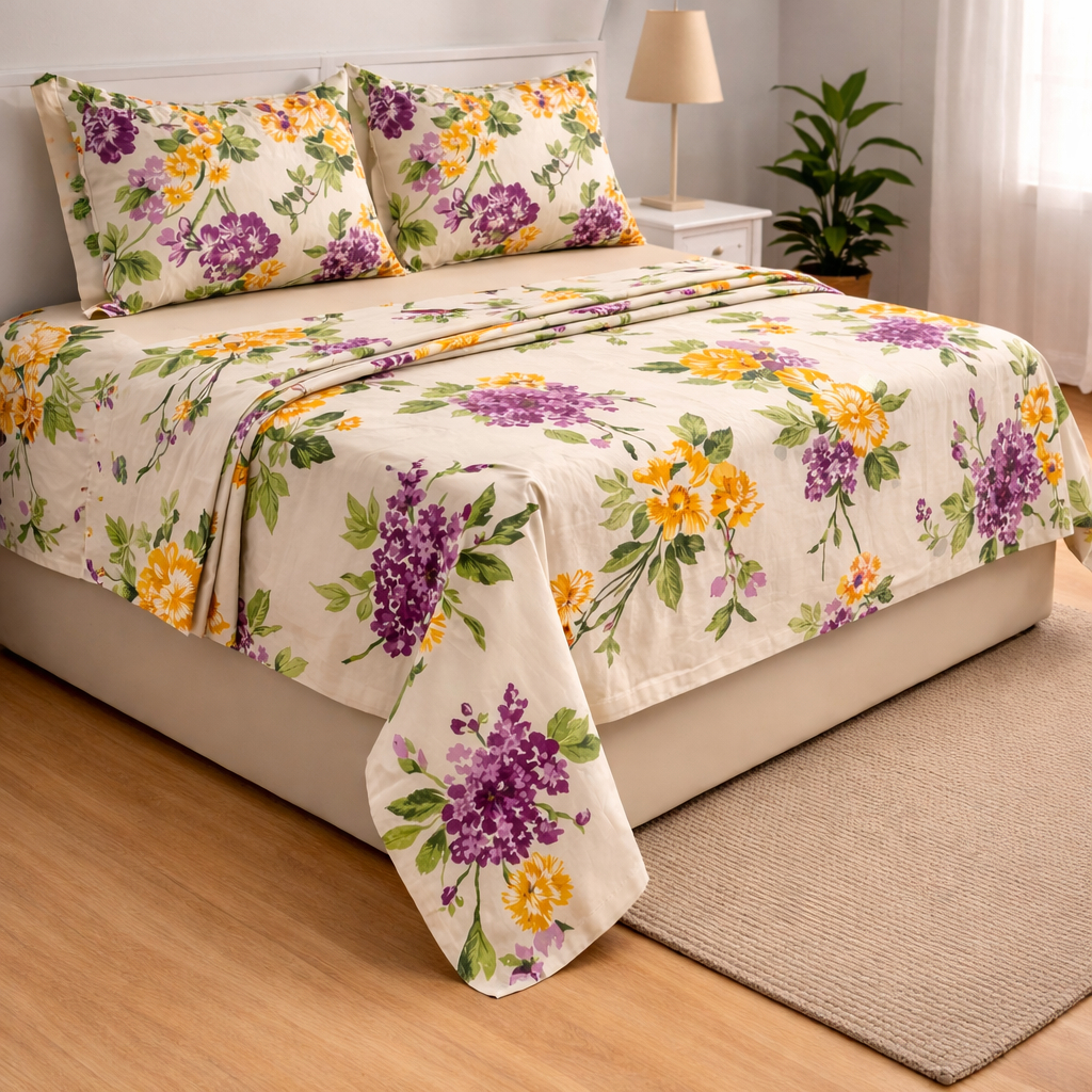 Jogo Lençol 4 Peças Algodão Estampado Cama Casal Box Enxovais Família