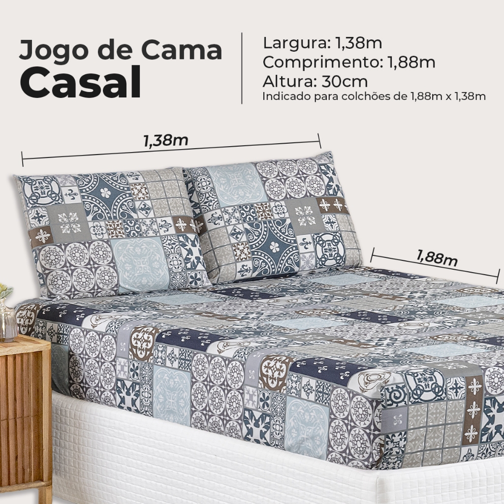 Jogo Lençol Casal Percal 400 Fios 3 Pçs Todo Estampado Macio e Toque Acetinado