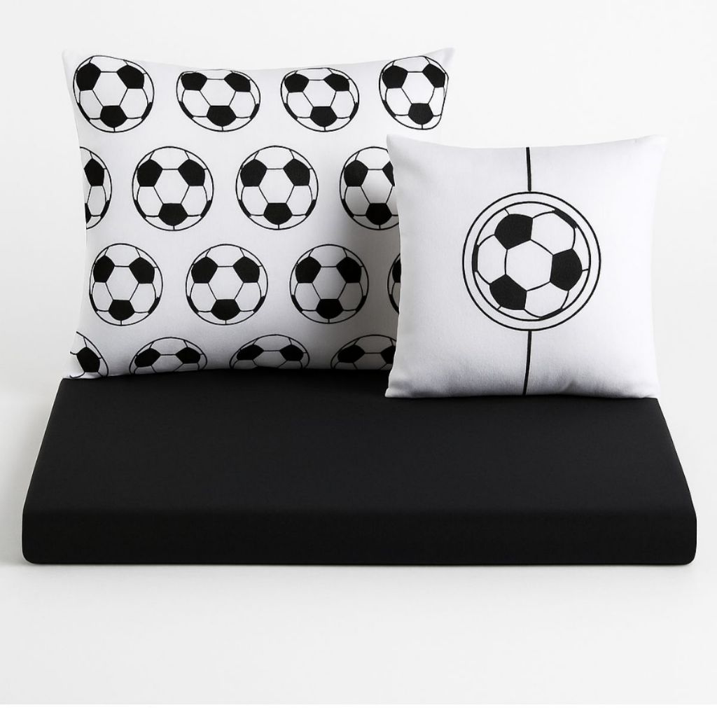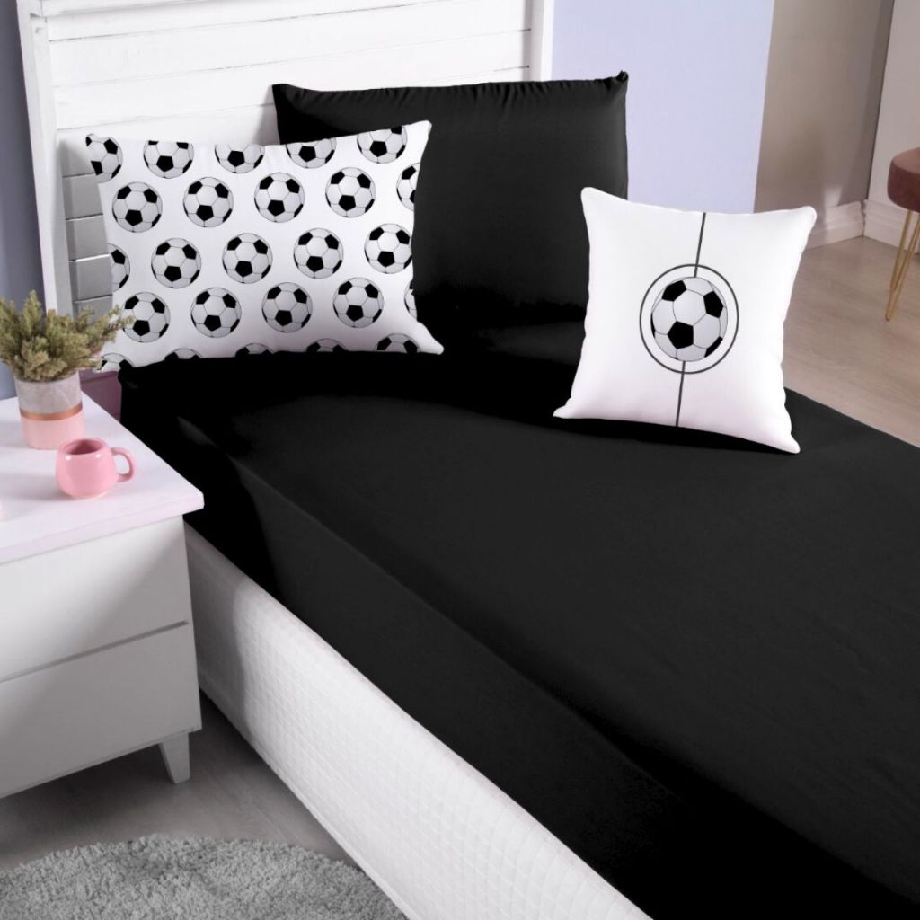 Jogo Lençol Roupa Cama Solteiro 4 Pçs Elastico Fronha Quarto Criança Infantil Menino Futebol Preto