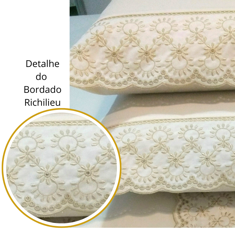 Jogo Lençol Solteiro 3 Peças 100% Algodão 400 Fios Bordado Richilieu
