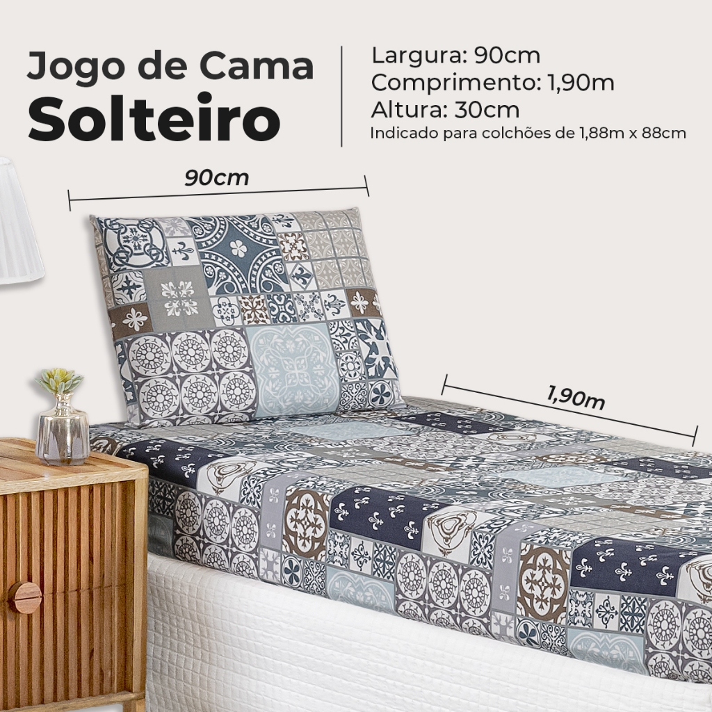JOGO DE CAMA LENÇOL COM ELÁSTICO SOLTEIRO BOX 02 PEÇAS - PERCAL 400 FIOS ESTAMPADO MACIO E TOQUE ACETINADO *Ideal para cama Solteiro Padrão Box. - Roupa de cama com elástico em toda a volta. - Fronhas com fechamento do tipo envelope, não possuem zíper. - Ideal para Cama Box Solteiro com 30cm de ALTURA. - Contém toque aveludado, não desbota e nem junta bolinhas. ------------------------------------------------------------ O QUE VAI NA EMBALAGEM *01 Lençol de baixo com elástico em toda volta 1.90m x 0,90m x 30cm altura *01 Fronha Estampada 70cm x 50cm COMPOSIÇÃO: 100% Poliéster 400 Fios TECIDO: Percal 400 Fios de Poliéster Toque Aveludado Tecido com Toque Macio ------------------------------------------------------------ FICHA TÉCNICA Para cama: SOLTEIRO PADRÂO BOX Qtd de Peças: 02 Peças Acabamento: Bainha Tecido | Tipo: Percal 400 fios de Poliéster Lavagem: Instruções na etiqueta Garantia: 1 Mês | Contra defeito de fabricação ------------------------------------------------------------ "SOMOS FABRICANTES" "TEMOS TODOS OS PRODUTOS ANUNCIADOS NA PRONTA ENTREGA" " POSTAREMOS SEU PEDIDO ASSIM QUE EFETUADO A COMPRA”