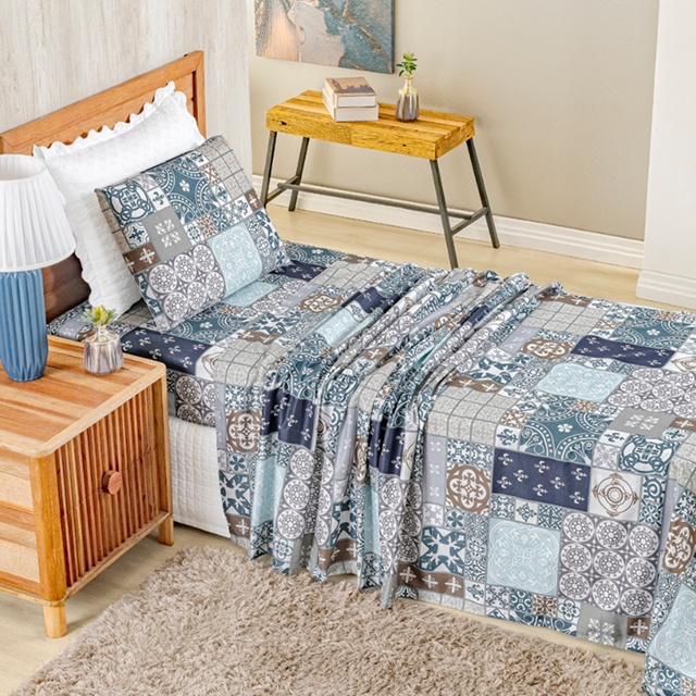 Jogo Lençol Solteiro Percal 400 Fios 3 Pçs Todo Estampado Macio e Toque Acetinado