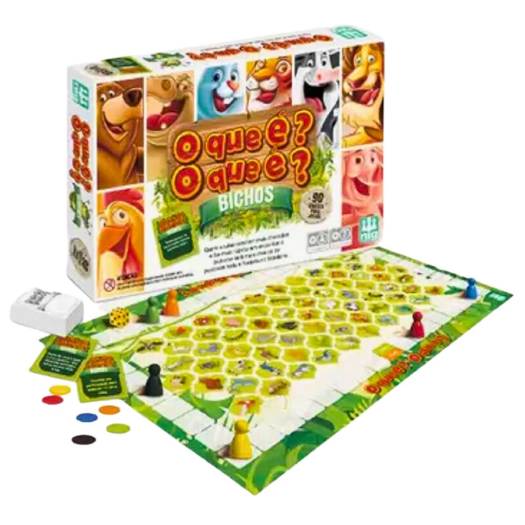 DESCRIÇÃO DO PRODUTO: Parece fácil encontrar um animal em um tabuleiro com 69 figuras? Neste jogo super divertido a criança ainda terá que responder às charadas e ser rápido para procurar o animal e marcar sua conquista. A cada acerto, o jogador atira o dado e percorre o tabuleiro. Vence o mais rápido e... com boa visão! CARACTERÍSTICAS TÉCNICAS: Conteúdo da Embalagem: 01 Jogo de Tabuleiro. Dimensões Aproximadas do Produto: 55cm x 32cm (Altura x Largura x Comprimento/Profundidade). Dimensões Aproximadas da Embalagem: 24cm x 5cm x 35cm (Altura x Largura x Comprimento/Profundidade) Material/Composição: Papel Cartonado / Polipropileno / Caixa em Papel Microondulado. Idade Mínima Recomendada: A partir de 07 anos. Participantes: 02 a 06 jogadores. Marca: Nig Referência: 1135 Outras informações: As cores podem variar entre as imagens mostradas acima e o produto. Imagens meramente ilustrativas. Aviso: As informações e imagens divulgadas são de total responsabilidade do fabricante/fornecedor. Produto lacrado e disponível a pronta entrega para todo Brasil! APROVADO PELO INMETRO