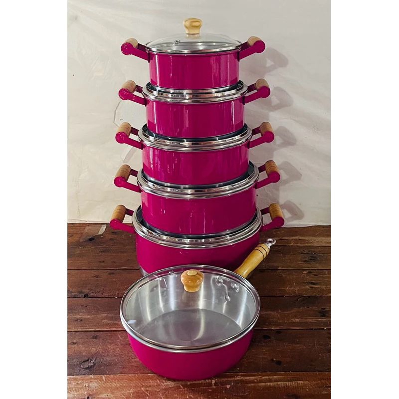 JOGO PANELA CAÇAROLA PINK 5 PECAS + FRIGIDEIRA N 20 TAMPAS DE VIDRO COLOR