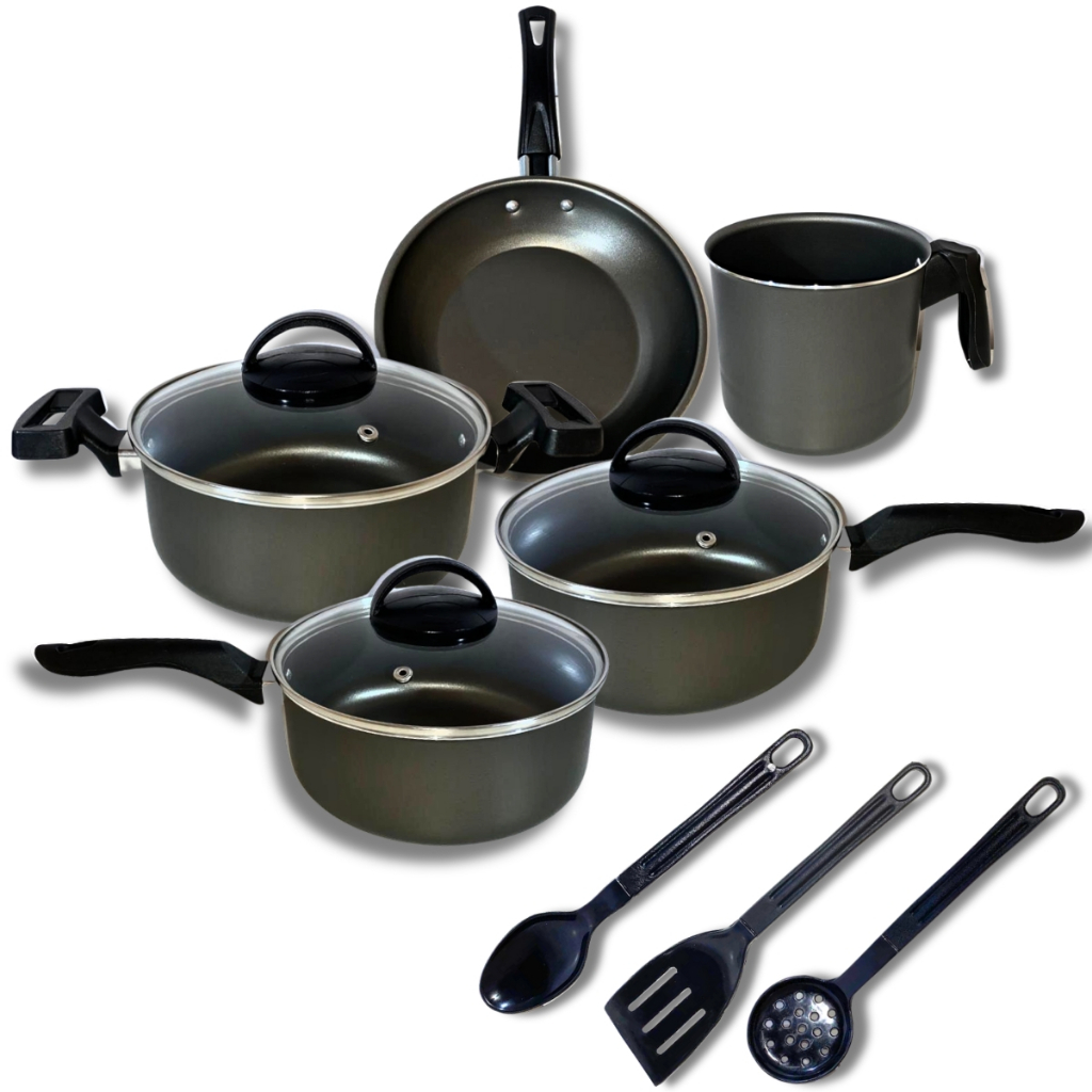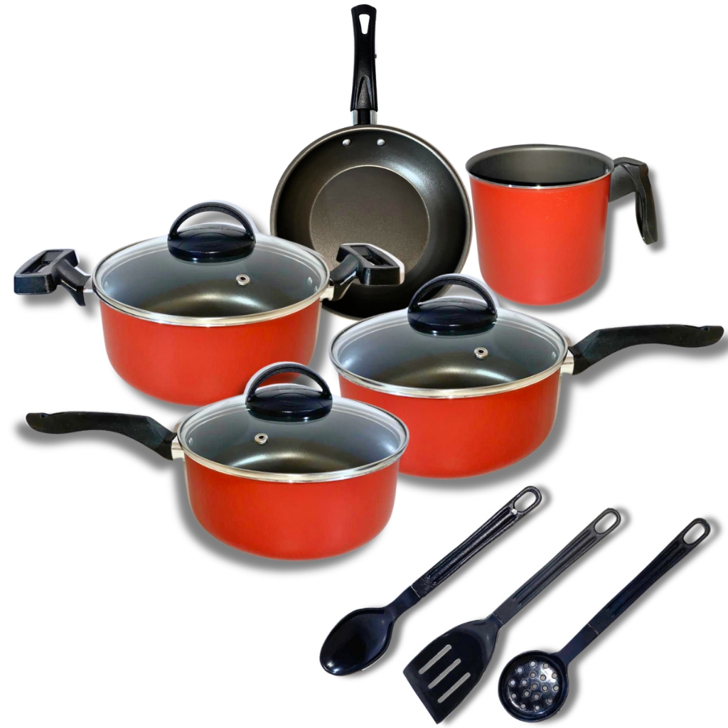 Seja Bem vindo (a) a Loja Coisas & Trecos Jogo de Panelas 8 Peças Antiaderente c/ Tampa de Vidro e Utensílios Fazer deliciosas receitas nunca ficou tão fácil e prazeroso. Lindas panelas fabricadas em alumínio, possuem tampas de vidro com saída de vapor. Revestimento colorido proporcionando beleza em sua cozinha. Além da praticidade do cozimento uniforme, proporcionado pelo revestimento interno e externo, elas permanecem bonitas por muito mais tempo. São fáceis de limpar, pois, devido ao antiaderente, os alimentos não grudam. Podem ser utilizadas em fogão a gás e levadas à máquina de lavar louças. Composição: - Panela 18 - Caçarola 18' - Caçarola 16' - Frigideira Francesa 16' s/ tampa - Caneco 12' - Escumadeira - Colher - Espátula Material: Alumínio Teflon Antiaderente Material das Tampas: Vidro Temperado Material dos Utensílios: Nylon Material Alças e Poméis: Baquelite Espessura: 1,2 mm Produto Original com Nota Fiscal. Disponível em estoque. Pronta Entrega (Envio em menos de 24 horas). Compra 100% Segura. *VERIFIQUE O CARRINHO ANTES DE FINALIZAR A COMPRA, POIS NÃO PODEMOS FAZER ALTERAÇÕES DE COR E TAMANHO UMA VEZ QUE A COMPRA É APROVADA* *IMAGENS MERAMENTE ILUSTRATIVAS. AS TONALIDADES PODEM VARIAR DE ACORDO COM SEU MONITOR OU ATÉ MESMO COM A PERCEPÇÃO DOS SEUS OLHOS* *O FABRICANTE PODE ALTERAR DETALHES DE COR NOS PRODUTOS SEM AVISO PRÉVIO* Garantia do vendedor: 1 mês